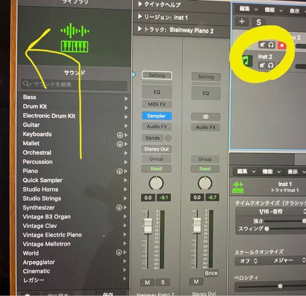 logicproxに関してです。マウスポインタを動かすと黄色の吹き出しで